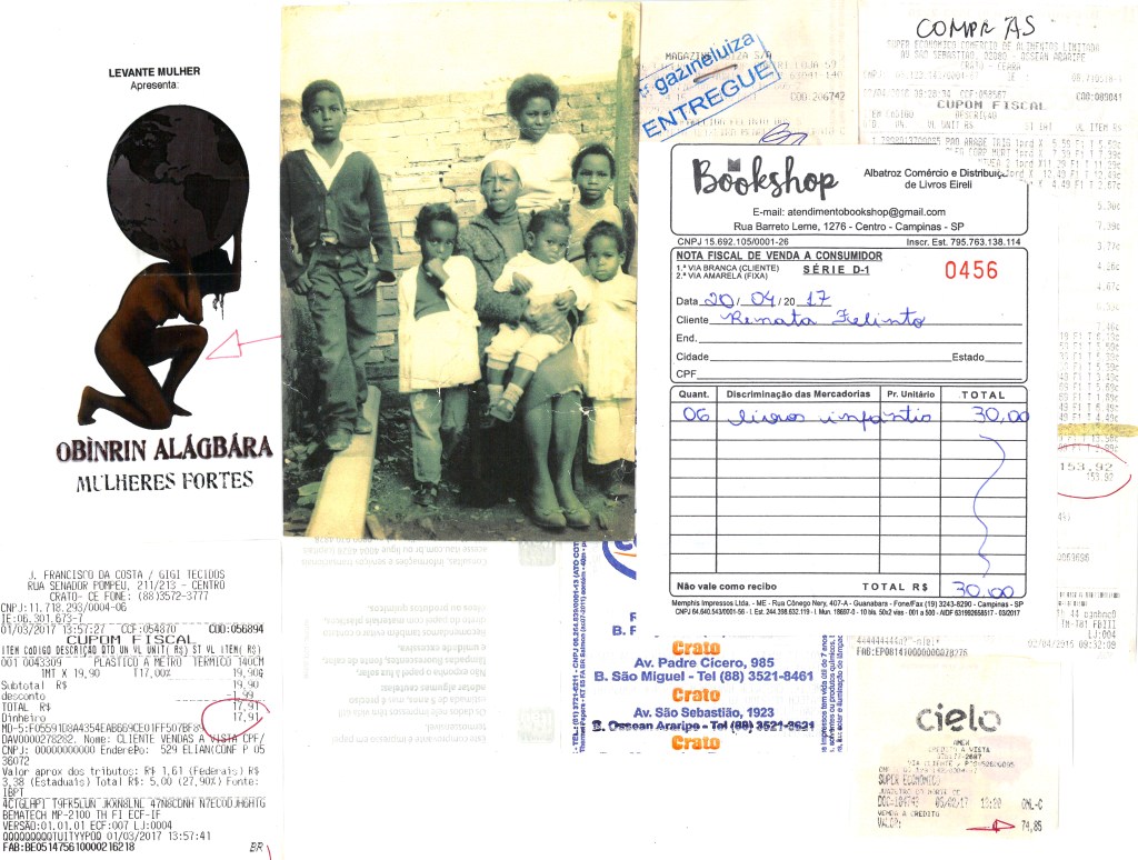 Instalação composta por recibos e notas fiscais recolhidas durante um ano provenientes de todos os gastos com a criação de suas duas crianças sem nenhum auxílio do progenitor. Esses documentos transformam-se em estampa para tecidos que são utilizados nas confecções de enxovais de bebês e também formam gravuras digitais que acompanham frases que mulheres nas condições de mães sozinhas já escutaram devido a essa realidade.
